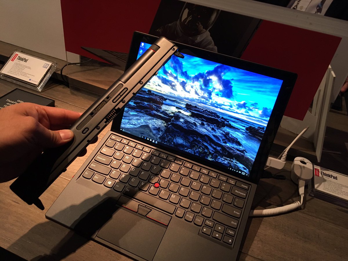 Планшет-трансформер ThinkPad X1 Tablet получил 12-дюймовый дисплей с разрешением 2150х1440 пикселей, Intel Core 7-го поколения, до 16 ГБ оперативной памяти и до 1024 гигабайта SSD. Без клавиатуры X1 весит 767 граммов, с клавиатурой — 1,07 кг.